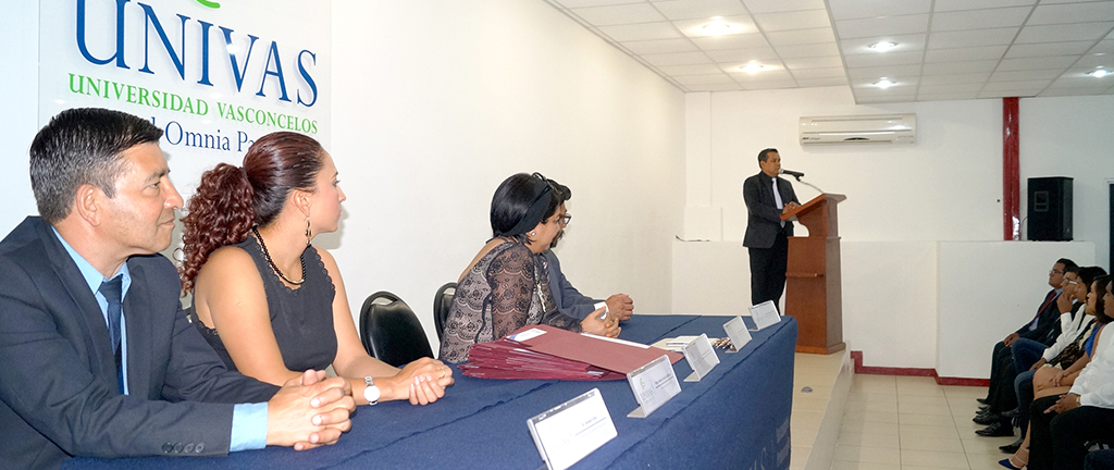 OAXACA, OAX.- Presidida por el rector de la Universidad Vasconcelos (UNIVAS), Hugo López Hernández, se llevó a cabo la ceremonia de entrega de títulos profesionales a egresados de las licenciaturas en Derecho, Ciencias de la Comunicación, Comunicación Gráfica, Ciencias de la Educación, Relaciones Internacionales y Ciencias Políticas.