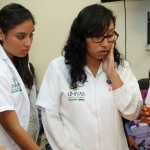 Los alumnos del primer semestre también formaron parte de un taller de belleza y posteriormente aplicaron sus conocimientos de cosmetología en las pacientes; las sonrisas en ellas surgieron espontáneamente al observar los resultados.