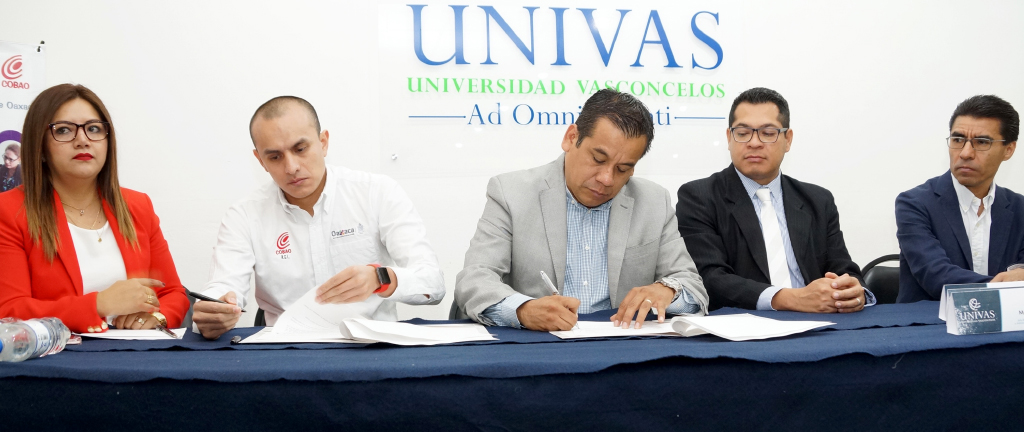Oaxaca, Oax.- Con el propósito de apoyar a jóvenes oaxaqueños para que tengan la oportunidad de continuar su formación de nivel superior, la Universidad Vasconcelos (UNIVAS) firmó un convenio de colaboración con el Colegio de Bachilleres del Estado de Oaxaca (Cobao) para otorgar becas a los egresados de dicho subsistema educativo.