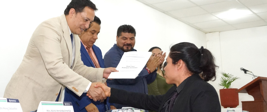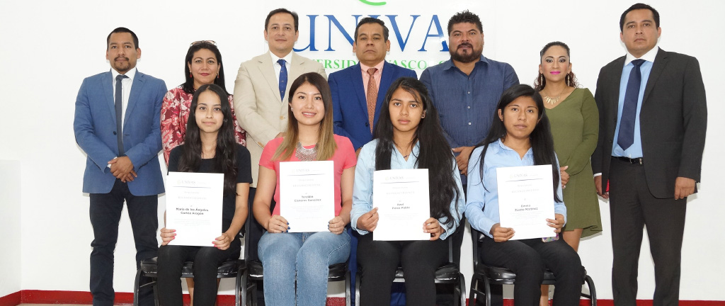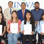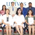 Los invitados de honor, el rector Hugo López y las y los coordinadores de áreas de la UNIVAS llevaron a cabo la entrega de reconocimientos a los estudiantes con el mejor rendimiento académico durante el semestre que concluyó el diciembre pasado.