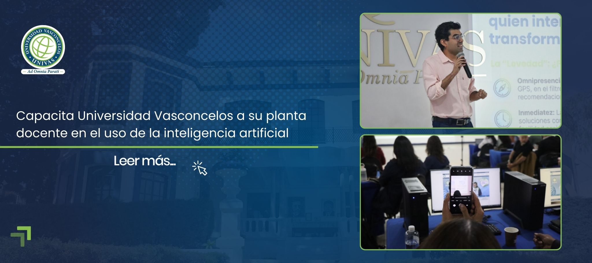 Durante el mes de enero, la Universidad Vasconcelos llevó a cabo el taller “La IA como aliada del docente: estrategias prácticas para la educación superior”, impartido por el Mtro. David Ulises Sánchez Vásquez, dirigido a las y los docentes de nuestra institución.
