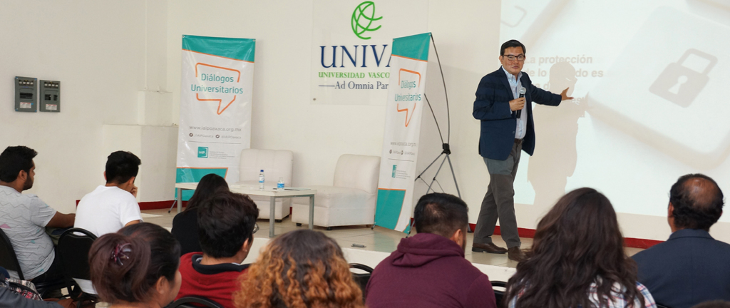 En este primer ejercicio, el comisionado del IAIP Oaxaca, Juan Gómez Pérez afirmó a los estudiantes de la licenciatura en Ciencias de la Comunicación de la UNIVAS, que el ejercicio del Acceso a la Información Pública y la Protección de los Datos Personales es necesario para una ciudadanía plena.