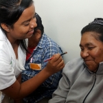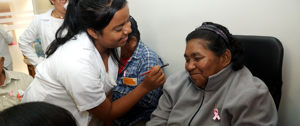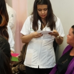 Los alumnos del primer semestre también formaron parte de un taller de belleza y posteriormente aplicaron sus conocimientos de cosmetología en las pacientes; las sonrisas en ellas surgieron espontáneamente al observar los resultados.