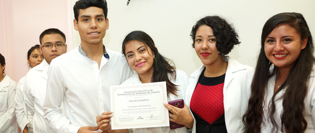 Al finalizar el ejercicio, la Asociación Científica de Estudiantes de Medicina de Oaxaca (ACEMOAX) entregó un reconocimiento a la UNIVAS por fomentar el desarrollo humano de sus estudiantes.