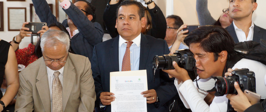 En su oportunidad, el rector de la Universidad Autónoma Benito Juárez de Oaxaca (UABJO), Eduardo Bautista Martínez destacó que este tipo de convenios con las instituciones educativas, también permiten someter al escrutinio público el actuar gubernamental, aspiración que comparten todos los centros educativos involucrados.