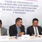 En la firma de los Convenios de Colaboración con Instituciones Educativas y de Investigación de Nivel Superior Públicas y Privadas participaron un total de 17 rectores y directores de universidades del estado. En representación de la Universidad Vasconcelos signó el acuerdo el rector Hugo López Hernández.