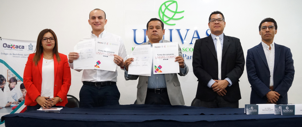 Oaxaca, Oax.- Con el propósito de apoyar a jóvenes oaxaqueños para que tengan la oportunidad de continuar su formación de nivel superior, la Universidad Vasconcelos (UNIVAS) firmó un convenio de colaboración con el Colegio de Bachilleres del Estado de Oaxaca (Cobao) para otorgar becas a los egresados de dicho subsistema educativo.