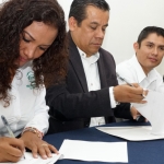 En la firma del convenio de colaboración participaron como testigos Jorge Ruiz Jiménez, director académico del IEBO; Alfonso Felipe García Ricaño, coordinador académico de la UNIVAS; y Sally Martínez Rasgado, jefa del Departamento de Acompañamiento Estudiantil y Admisiones UNIVAS.