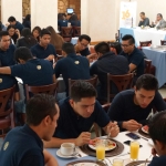 Al recibir a las y los universitarios en un restaurante del Centro Histórico de la capital, el rector de la UNIVAS señaló que los encuentros deportivos celebrados en el contexto de la Semana Académica fortalecieron sin duda la identidad universitaria y el sentido de unidad.