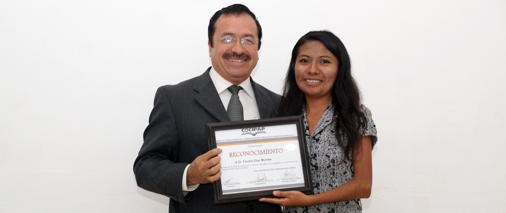 En este acto también recibió un reconocimiento al mérito académico el doctor en Ciencia Política, Fausto Díaz Montes, y actual coordinador general de Educación Media Superior y Superior, Ciencia y Tecnología del Gobierno de Oaxaca, por su dedicación al estudio de esta disciplina por más de 30 años.
