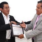 En seguida, Montes Jiménez hizo entrega del reconocimiento a la UNIVAS al rector Hugo López Hernández, por ser la primera institución en Oaxaca en ofrecer estudios de nivel licenciatura en Ciencia Política.